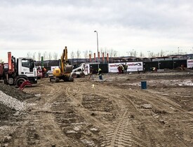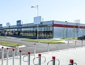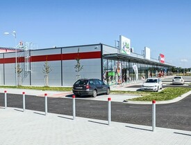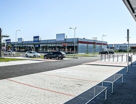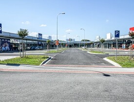 Součástní dodávky byla kompletní výstavba inženýrských sítí, výstavba třech prodejních hal, parkovišť a veškerého příslušenství.